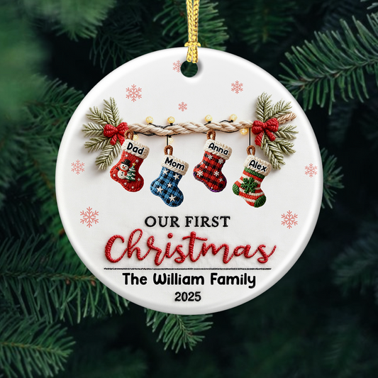 Our First Christmas - Custom Ceramic Ornament Christmas Gift - 3D Effect Ornament