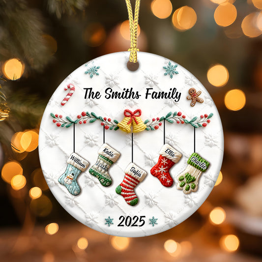 Christmas Socks Custom Name - Custom Ceramic Ornament Christmas Gift - 3D Effect Ornament