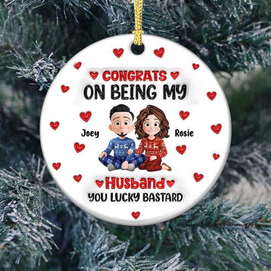 Congrats My Husband - Custom Ceramic Ornament Christmas Gift - 3D Effect Ornament